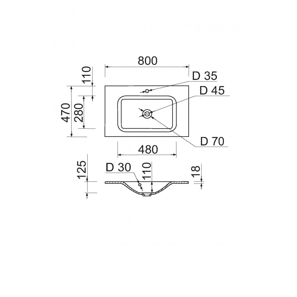 Накладной умывальник для тумбы «Frate 80» – идеальное решение, благодаря которому интерьер вашей ванной комнаты будет выглядеть привлекательно и по-современному. Накладную чашу раковины можно установить на любое основание, столешницу на ножках, тумбу или консоль, что обеспечивает легкий и быстрый монтаж, для удобства отверстие под смеситель уже присутствует.